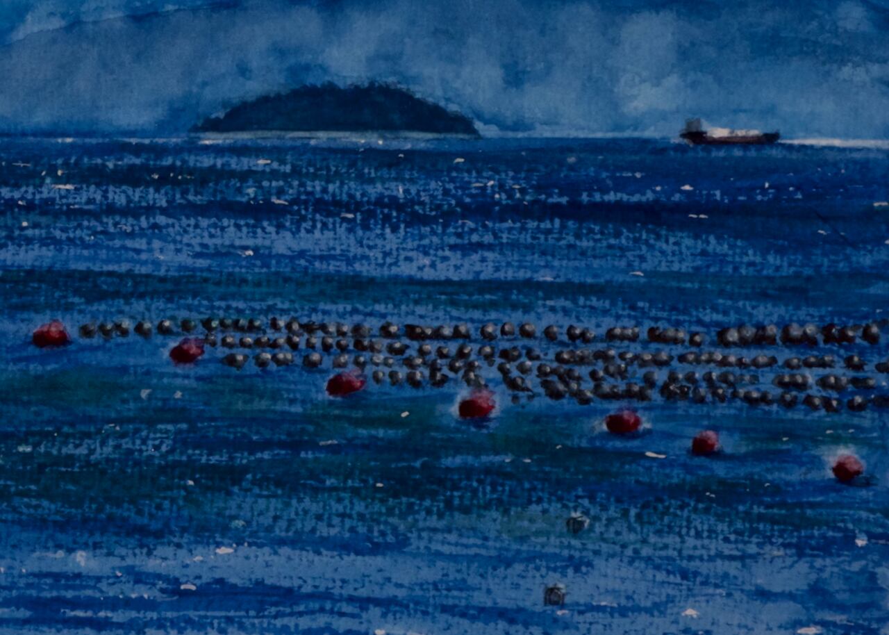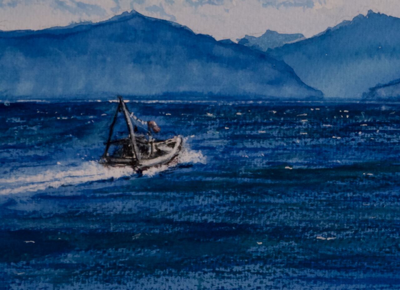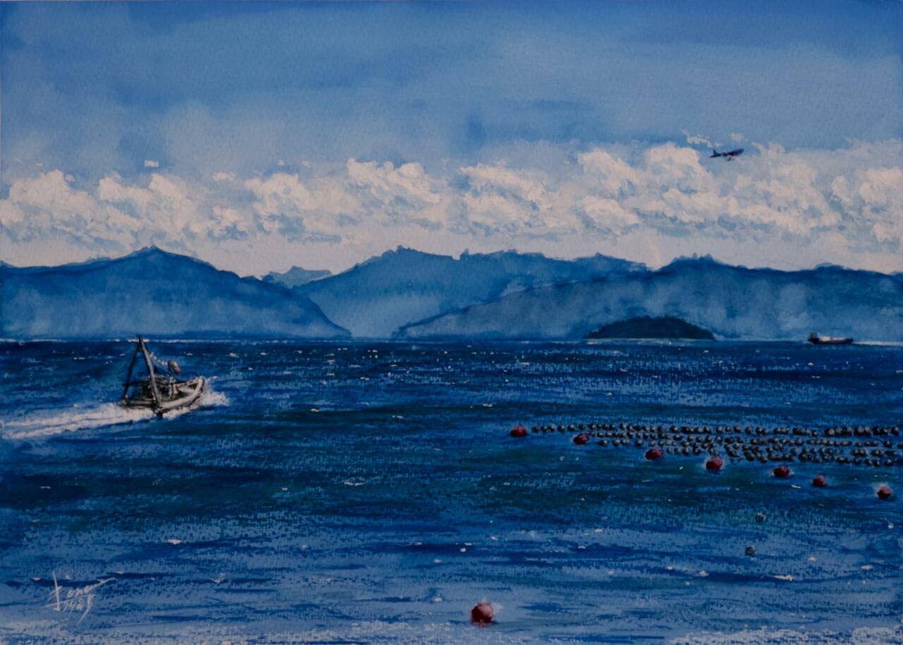蒼い夏:DeepBlue<透明水彩>原画:額付き #セトウチクジラ