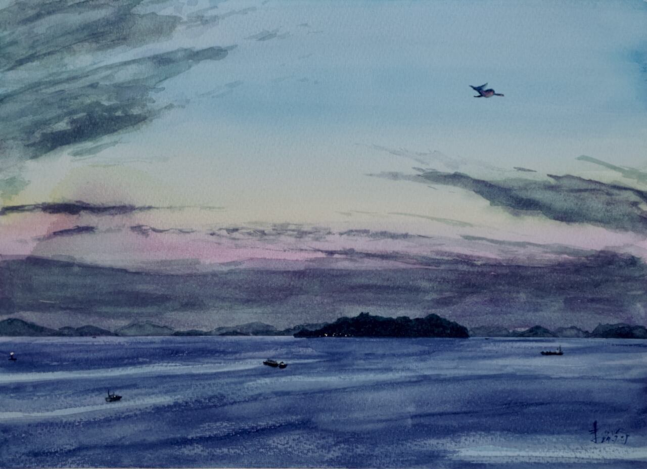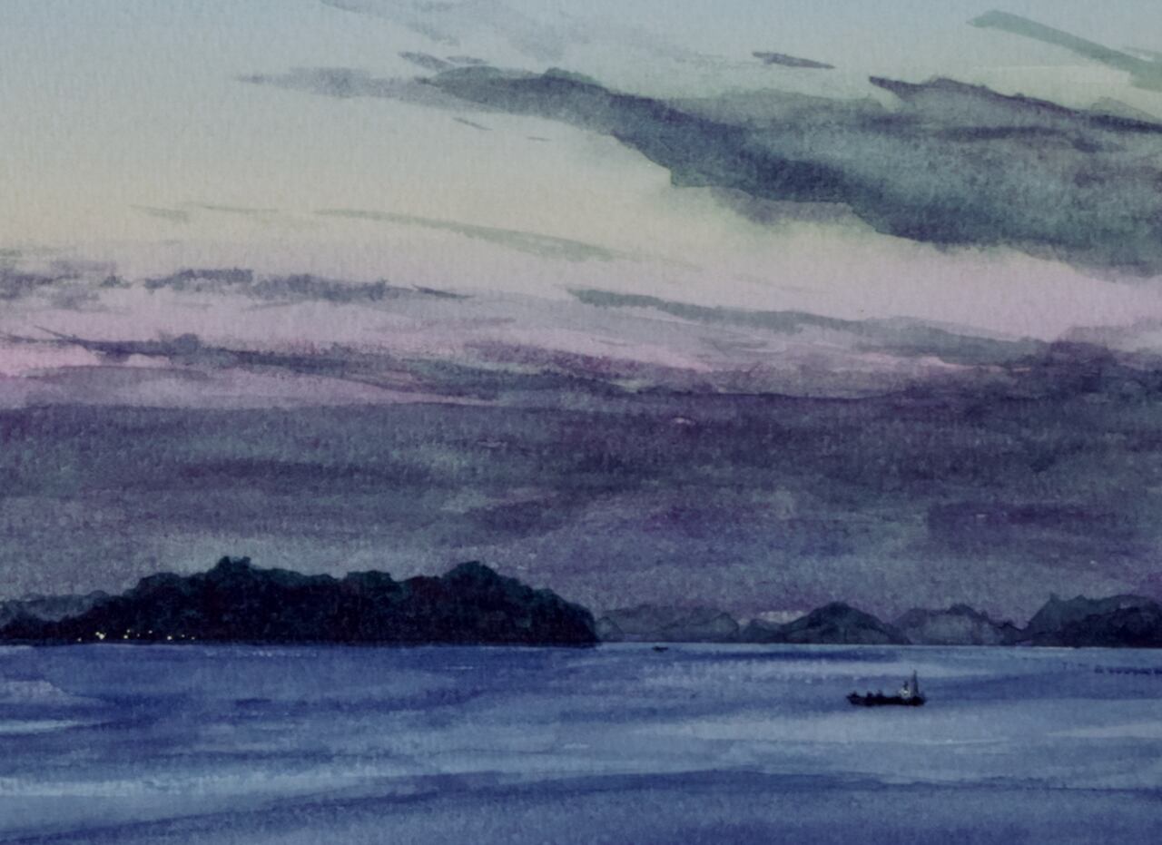 家路<透明水彩>原画:額付き #セトウチクジラ
