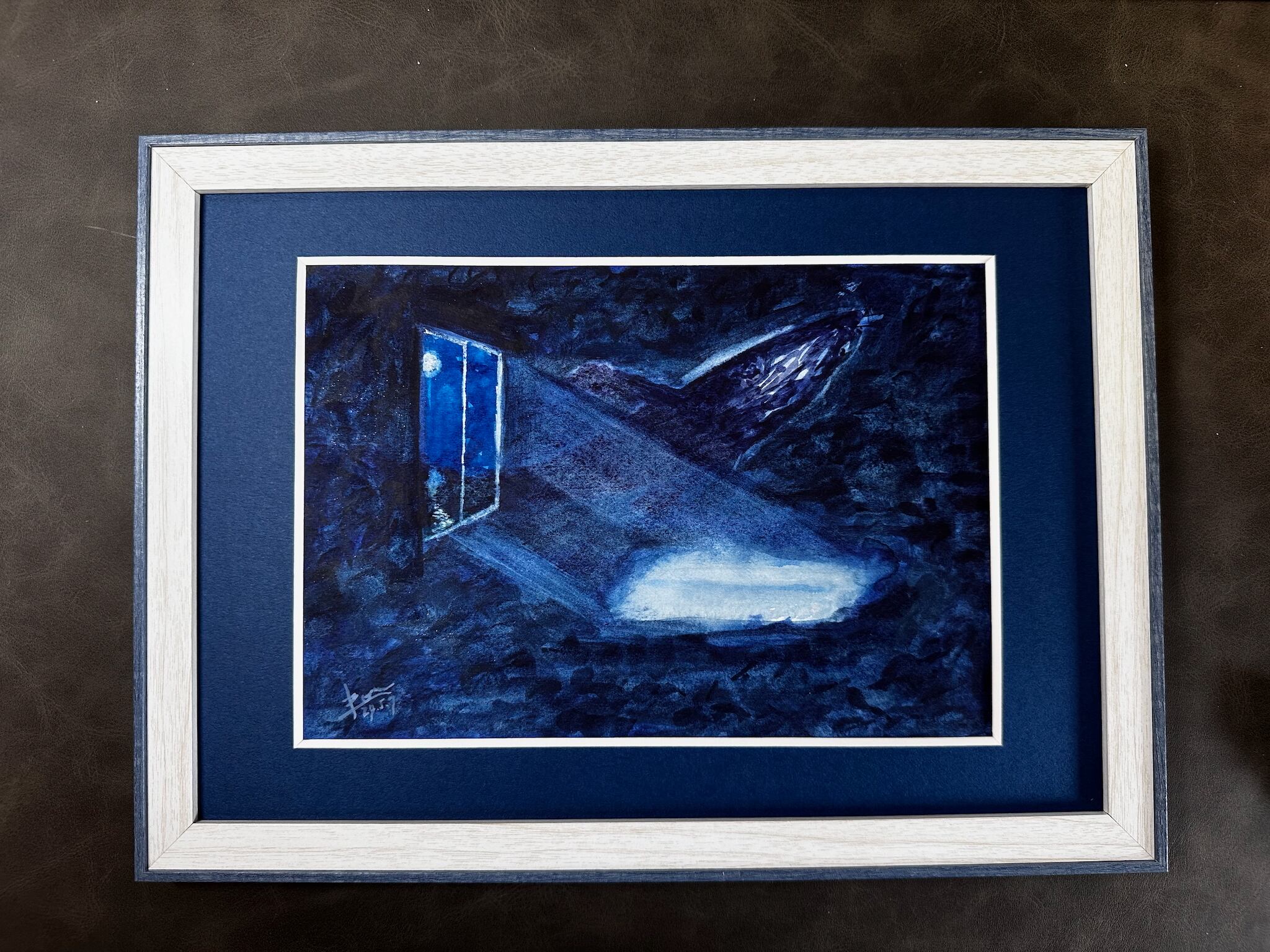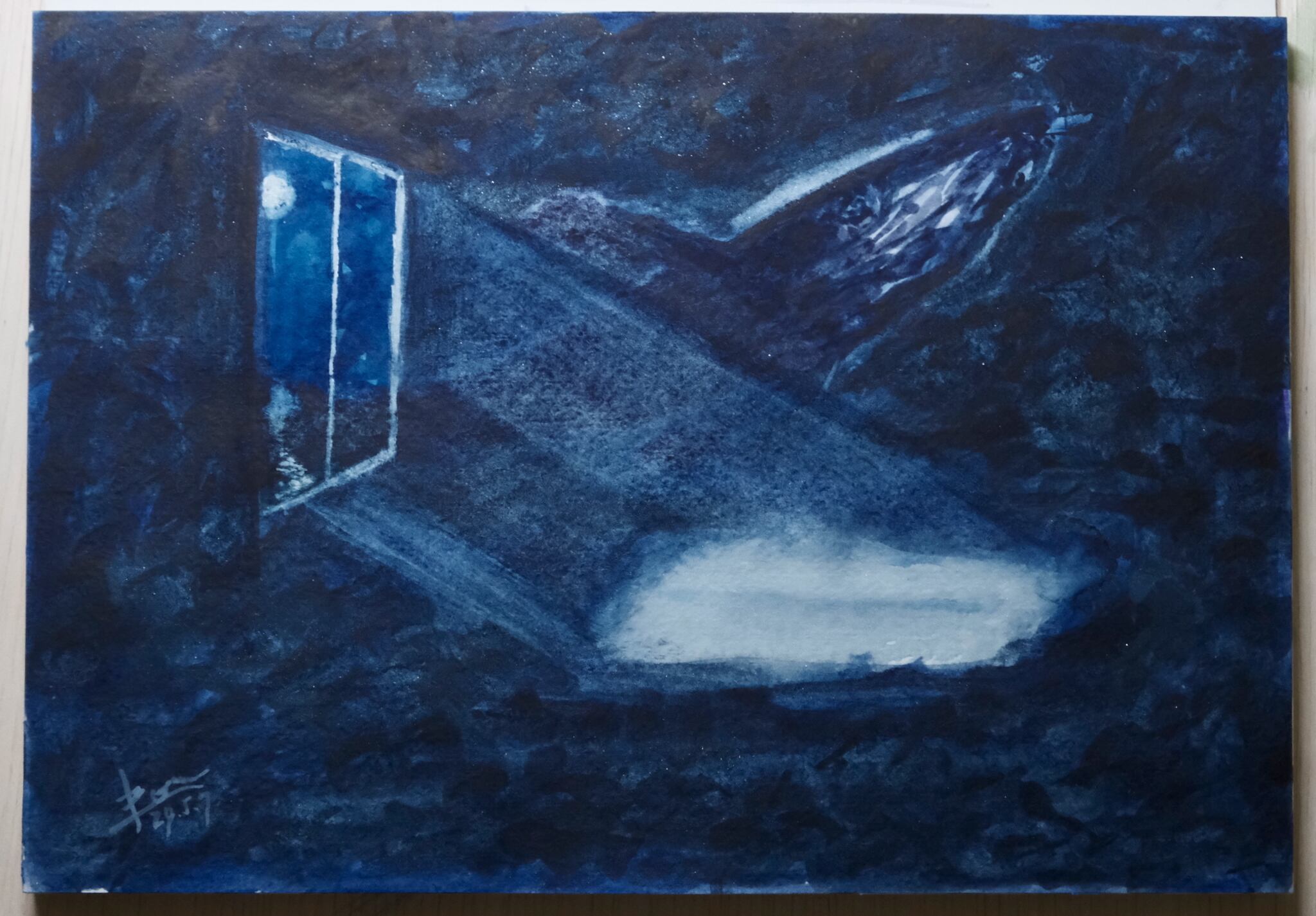 Blue light slips through the windowpane