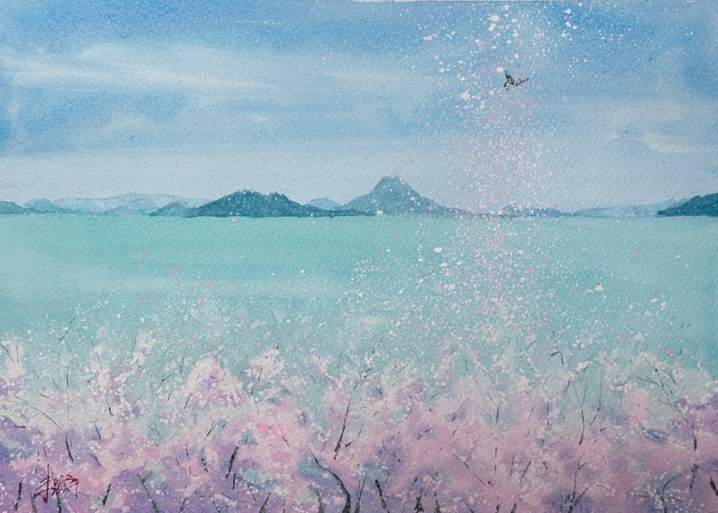春に吹く風<水彩画>原画 #セトウチクジラ
